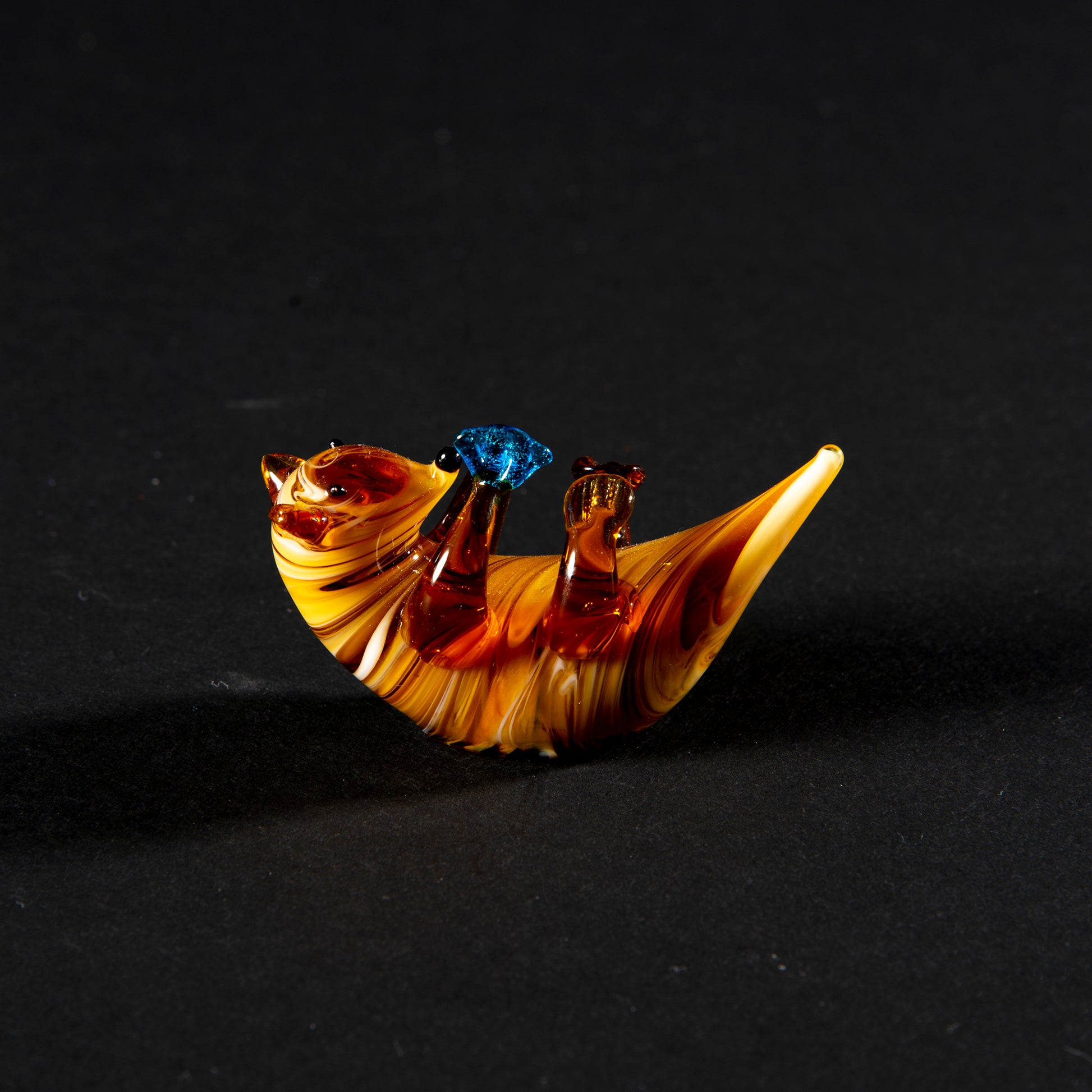This colored glass sea otter is a beautiful addition to any collection of glass figurines or ocean-themed decor. Its intricate details and lifelike appearance make it a stunning centerpiece for any room, whether displayed on a mantle, shelf, or in a glass case.